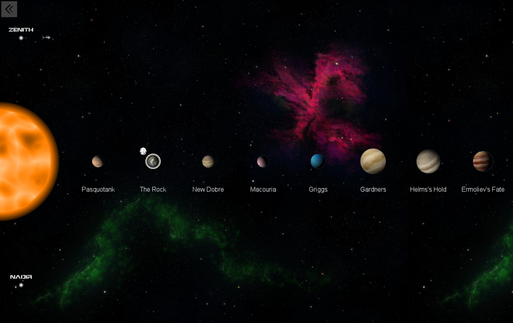 Entre esses corpos, havia o Tesouro de Kuzmin, um asteroide habitado, um assentamento de mineração que “lutava para sobreviver” — e, orbitando ali perto, o pequeno e quase inabitável Lamento de Sísifo.